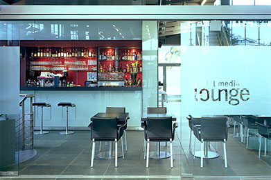 Die “Print Media Lounge” ist ein Teilbereich im Foyer der “Print Media Academy”, dem Kommunikations- und Trainingszentrum der Heidelberger Druckmaschinen AG, ein