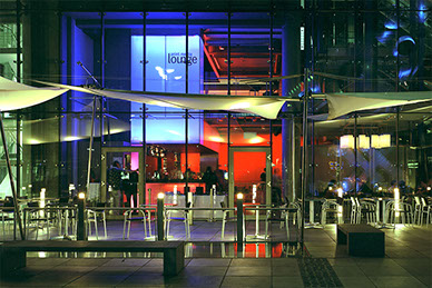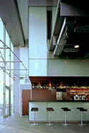 13-geschossiger High-Tech-Glasbau, der im Inneren von einem großzügigen Atrium durchdrungen wird.