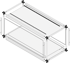 zur Längsseite dient als Führung für die Vitrinenscheiben. Mit der Standardisierung der einzelnen Bauteile kann das Vitrinensystem