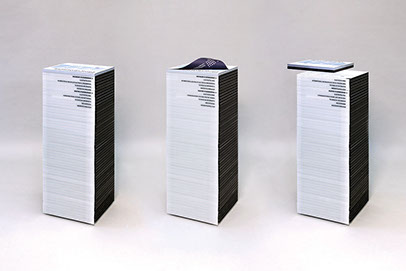 Die einzelnen Fakultäten sind jeweils durch einen Block repräsentiert, die jeweiligen Inhalte grafisch auf die einzelnen drehbaren Platten aufgezogen. Die Stapel sind keine geschlossen statischen Systeme, sondern dynamische, sich wandelnde Objekte. Die Informationen zu den einzelnen